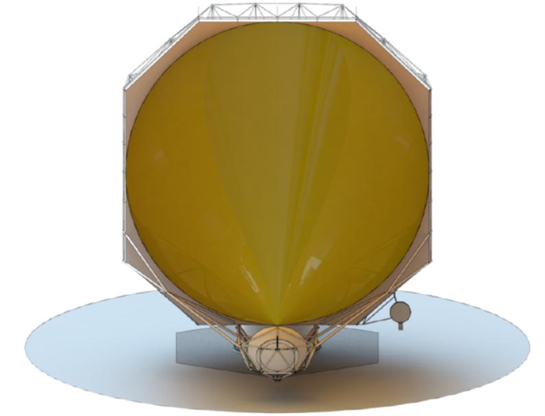 The resulting panel and backup structure concept lead to an octagonal main reflector shape. The 18m aperture is inscribed within this envelope (see figure to right) with the remaining area acting as a ground spillover shield to improve antenna noise temperature.